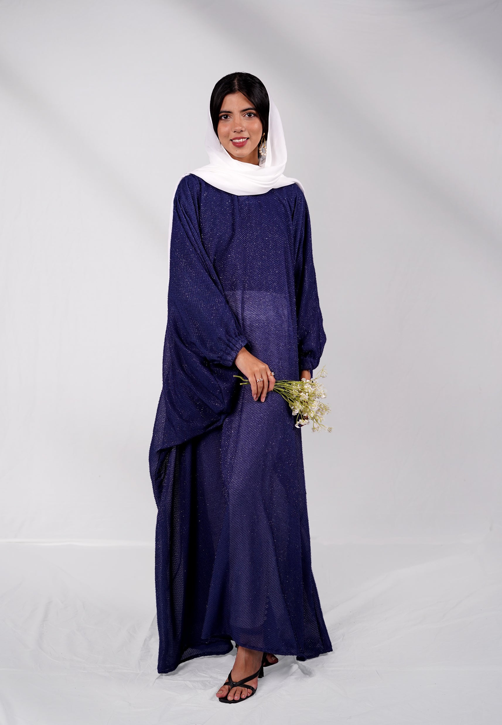 Options of various lengths to give you full coverage. Cut in a structured loose fit cut with - light airy and fluid fall which adds to the fluid look and feel to this beautiful Kaftan. It includes Abaya only.