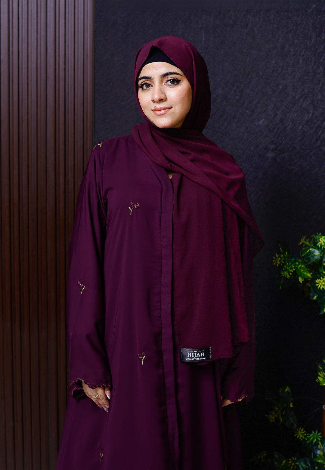 Elevate your modest wardrobe with our The Mulberry Bloom Abaya, a masterpiece of understated elegance. Crafted in a rich, deep plum hue, this abaya is designed for the modern woman who appreciates fine detail and a sophisticated silhouette.